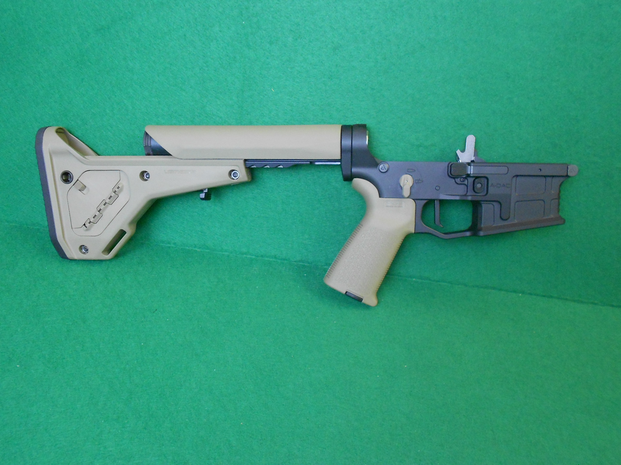 Exklusiver AR15 Lower für beidseitige Bedienung ausgelegt mit den besten Komponenten ausgestattet: Mag Pul UBR Hinterschaft Gen. 2 in FDE, beidseitige Sicherung Radian in FDE, Matchabzug Velocity mit geradem Züngel, Mag Pul Griff in FDE, Wolf Feder und Buffer.